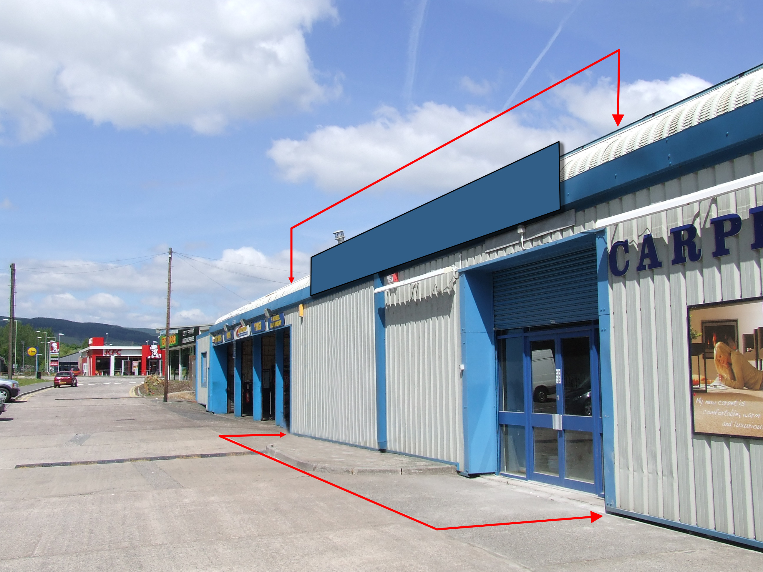 Retail unit in prominent roadside location fronting the A4058 adjacent to Greggs, Aldi, Lidl, KFC and Farm Foods and comprising 5,781 sq ft retail space plus 1,864 sq ft storage and ancillary 235 sq ft available TO LET